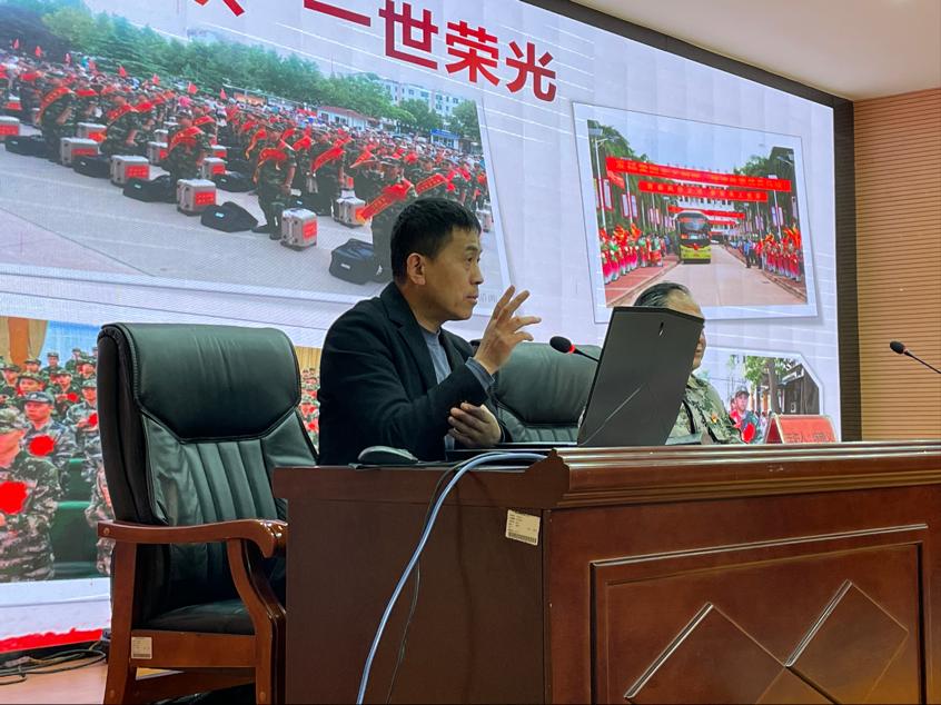 主讲人陈晓义同志为同学们宣讲征兵工作