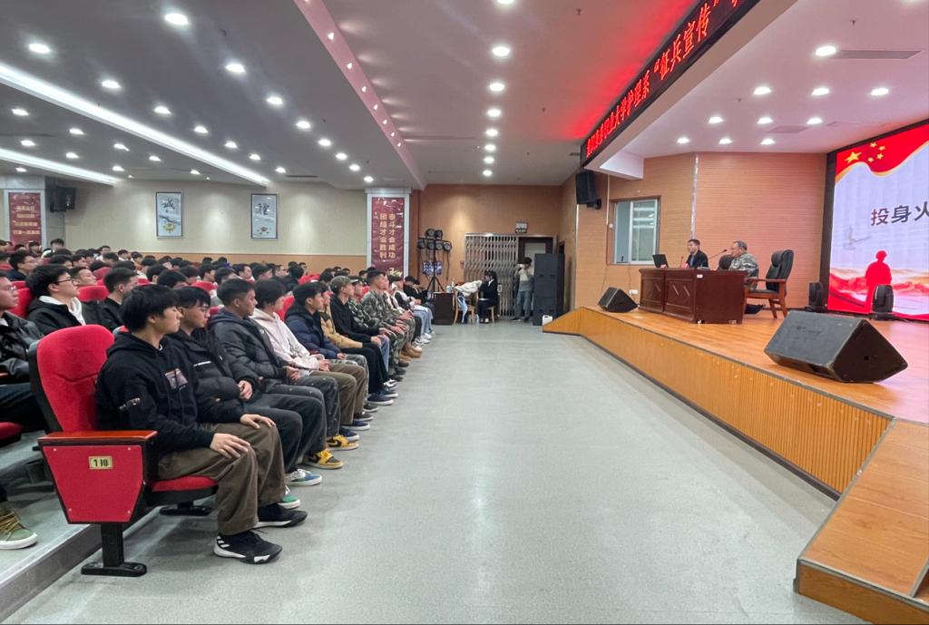 首先,在征兵宣传讲座中,退役军人事务局政委对同学们进行征兵相关内容宣讲。他指出征集服现役的公民必须热爱中国共产党,热爱社会主义祖国,热爱人民军队,遵纪守法,品德优良,决心为抵抗侵略、保卫祖国、保卫人民的和平劳动而英勇奋斗。选择了参军入伍就选择了人生的磨砺,选择了人生的磨砺也就选择了人生的收获,这种选择将无愧于祖国、无愧于人民、无愧于时代。