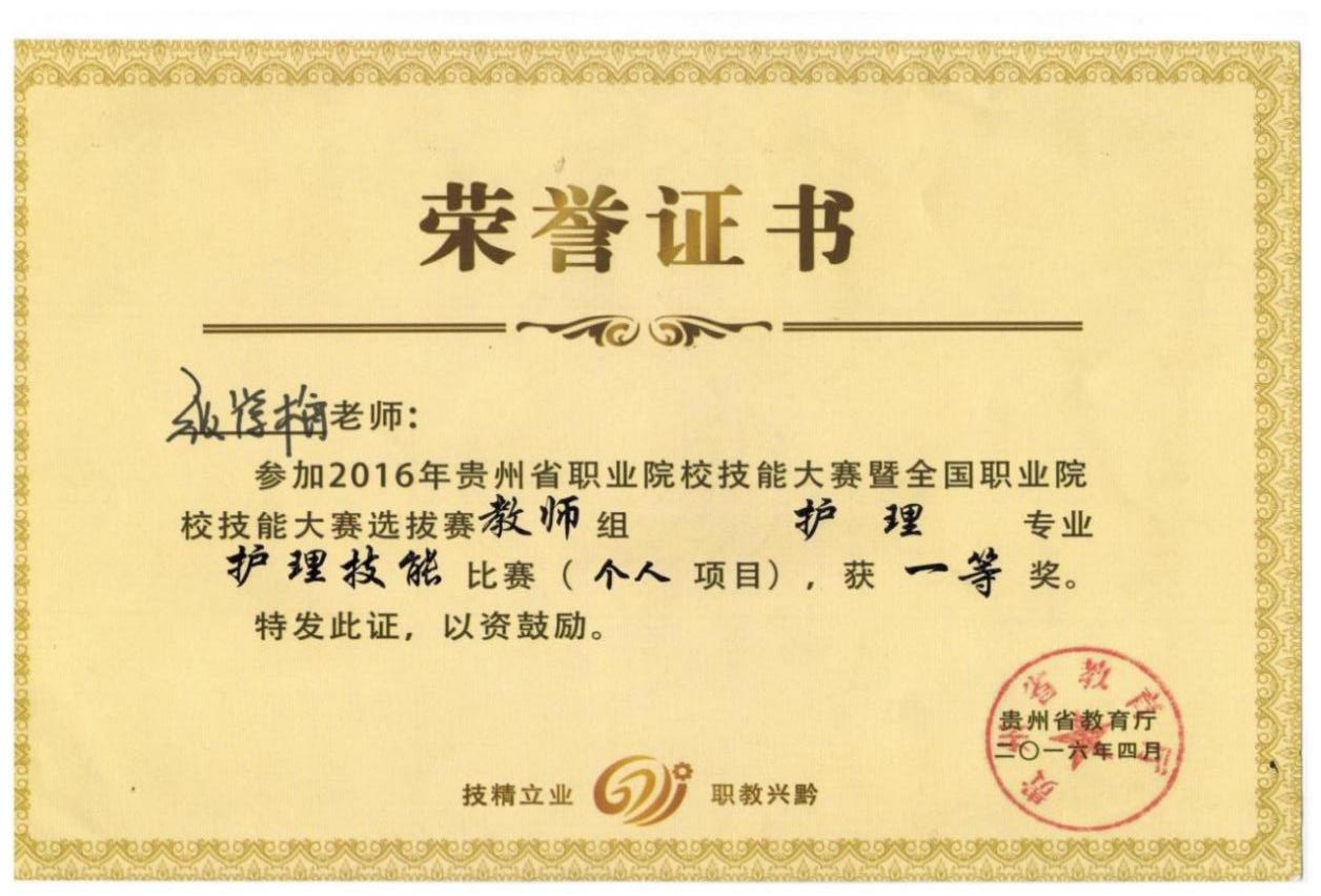 团队队伍:yl23455永利现有专任教师总数98人,具有硕士及以上学位者36人,“双师型”教师67人,副高级以上职称47人,3人获省级职教名师、产业教授、最美劳动者等称号,20余人在国家级、省级学会担任理事、副理事长和理事长等职。拥有省级刘林大师工作室、省级叶秋萍名师工作室、省级黔匠工坊。2024年,护理教师团队获评省级职业教育教师教学创新团队。