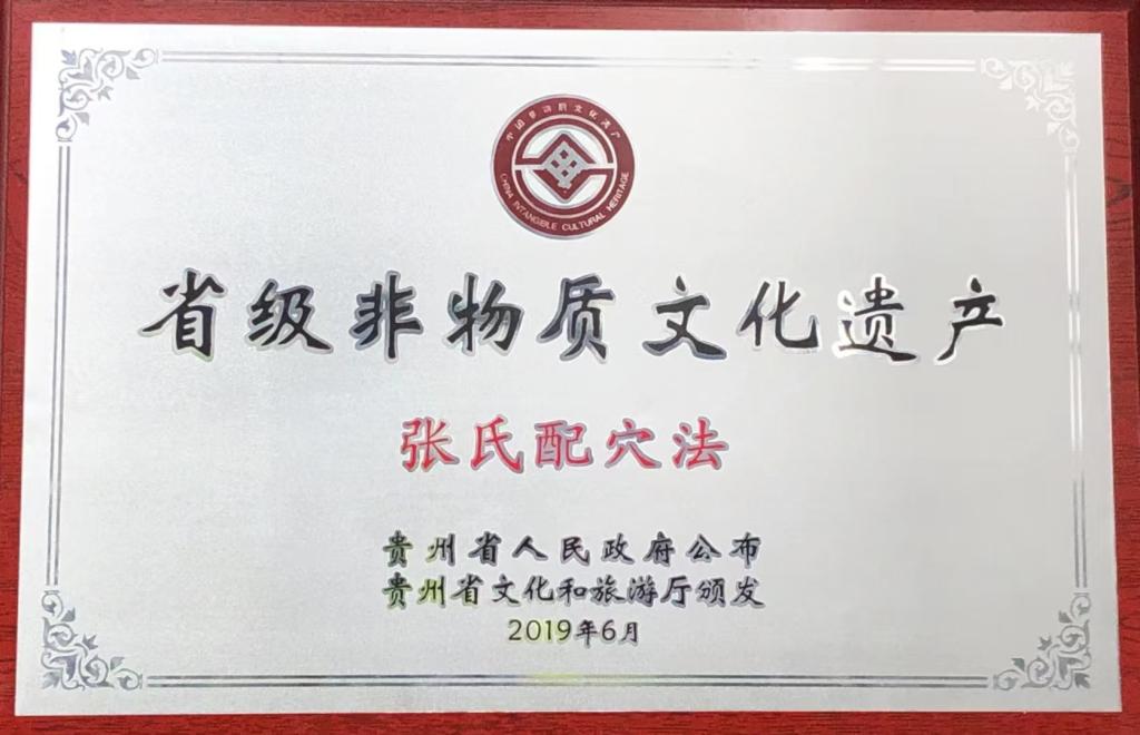 张氏配穴省级非物质文化遗产牌匾